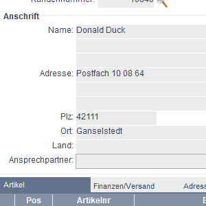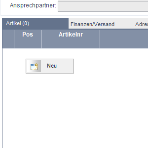 Schritt 5: Artikel hinzufügen Es wird nun einen oder mehrere Artikel geben, welche bestellt wurden. Diese werden auf der Registerkarte "Artikel" hinzugefügt. Über die rechte Maustaste erscheint der Befehl "neu", welcher eine zunächste leere Zeile einträgt und auf der rechten Seite ein Maske mit Artikelfeldern darstellt. |