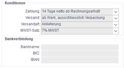 Die hier auswählbaren Konditionen sind zunächst in den Basisdaten zu hinterlegen. |